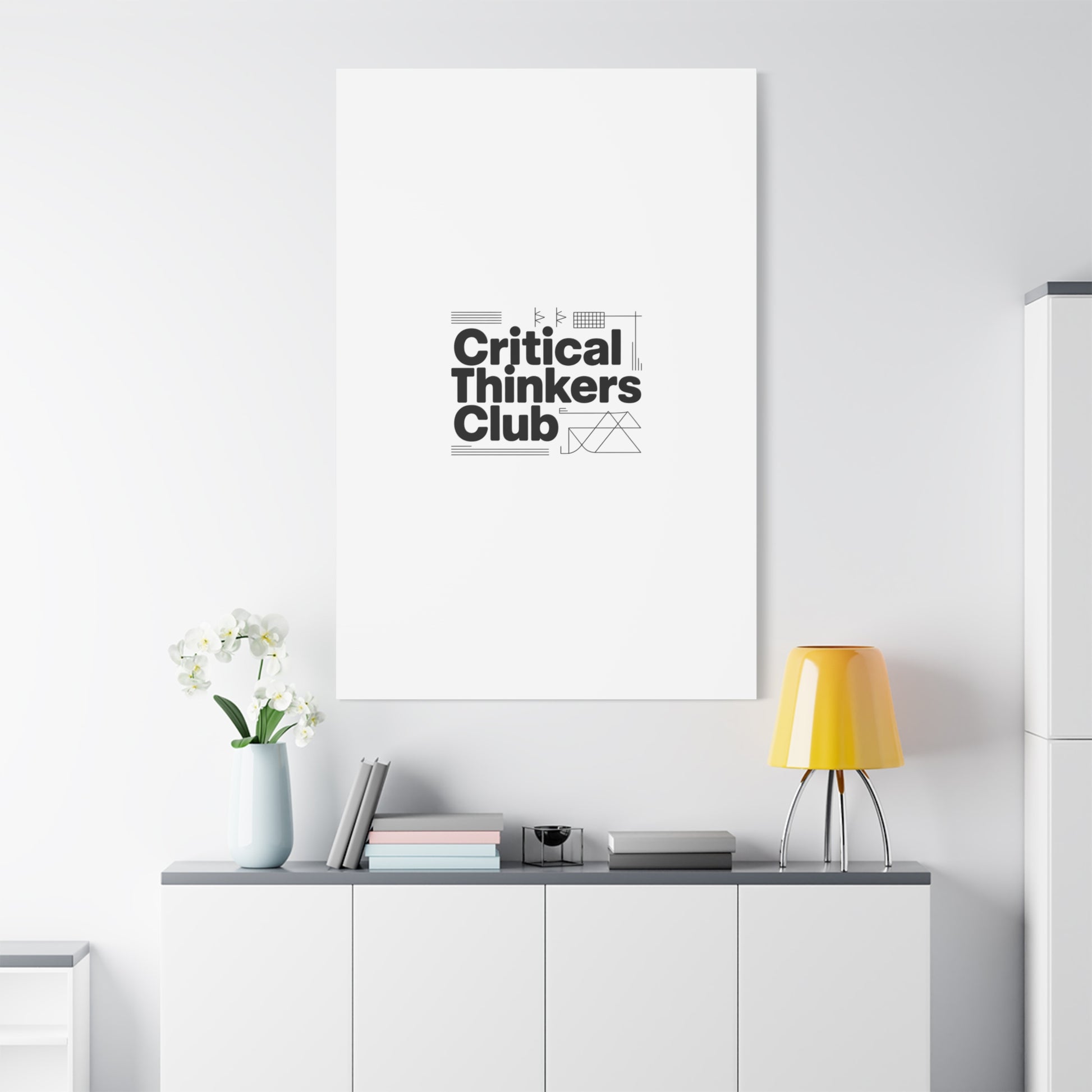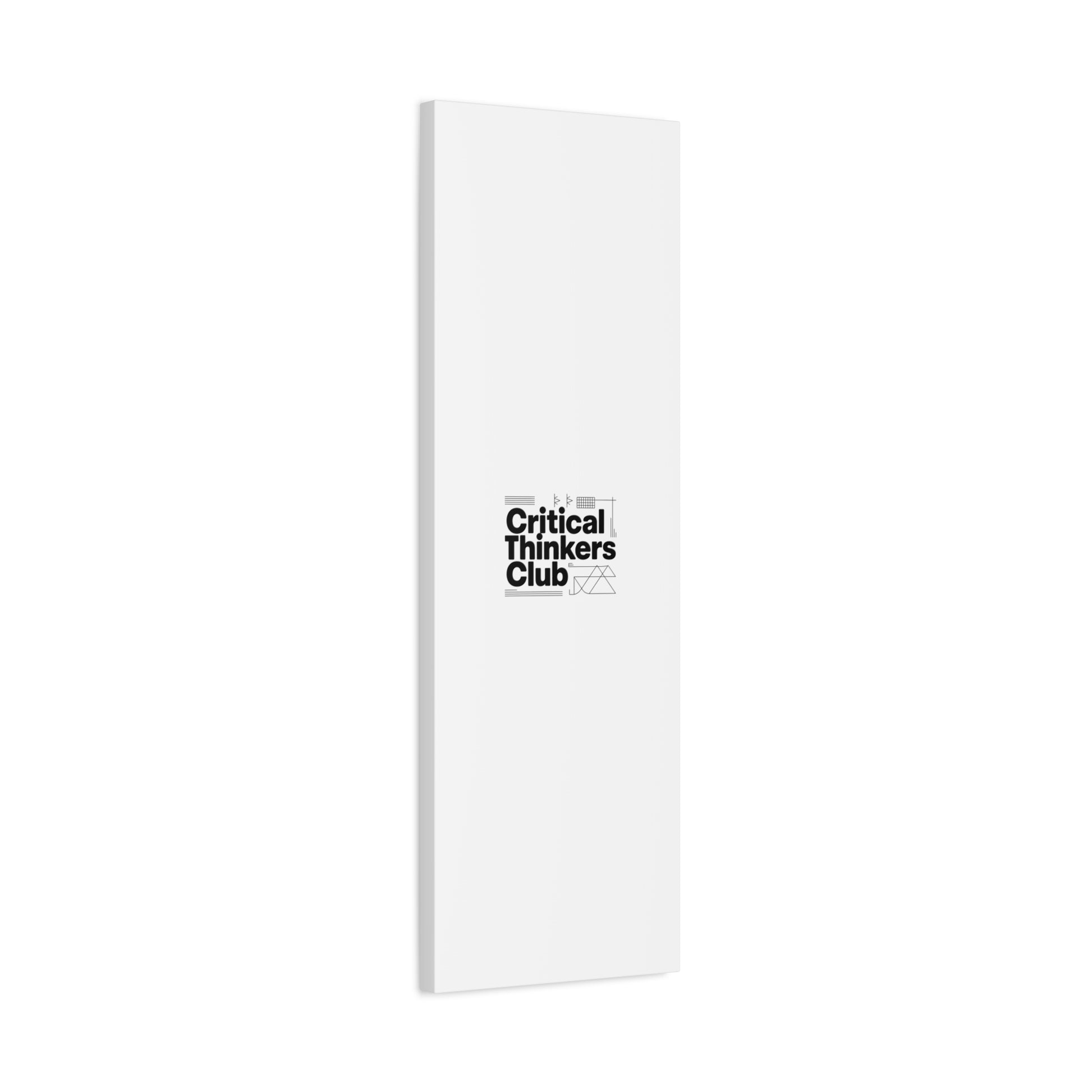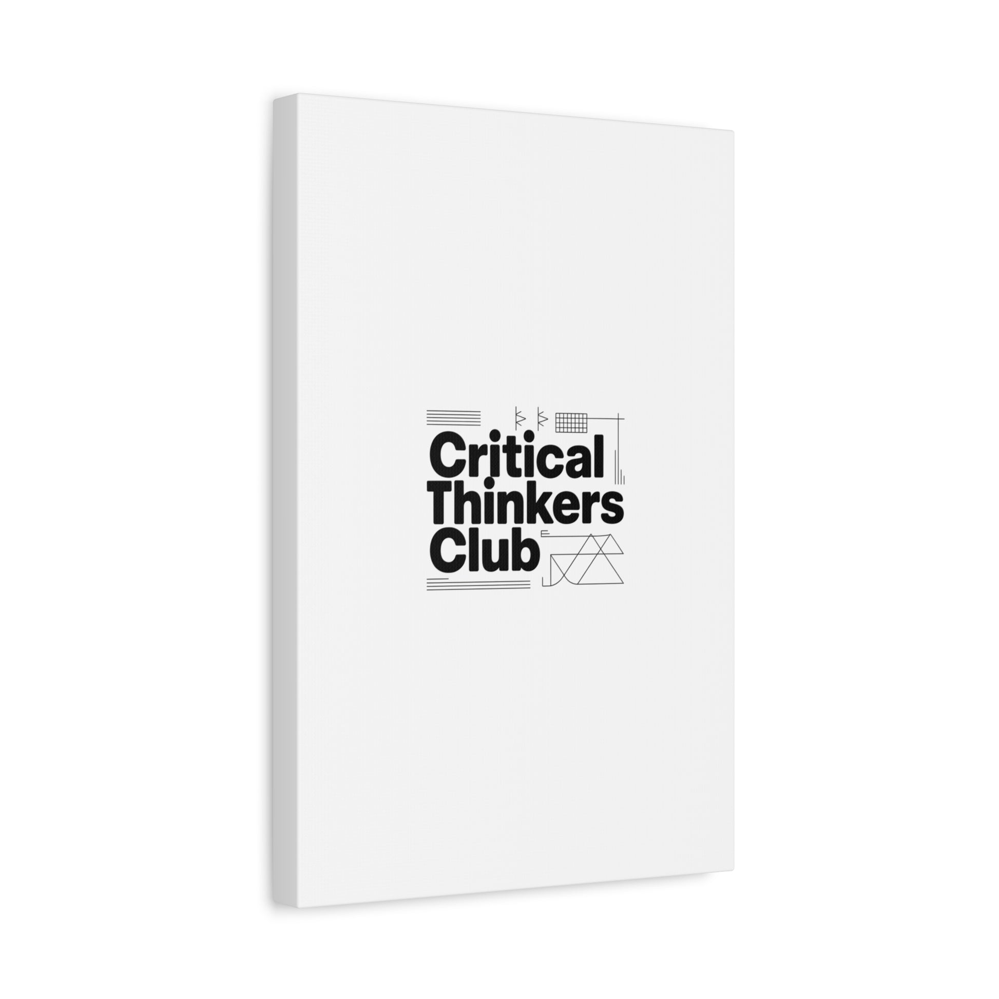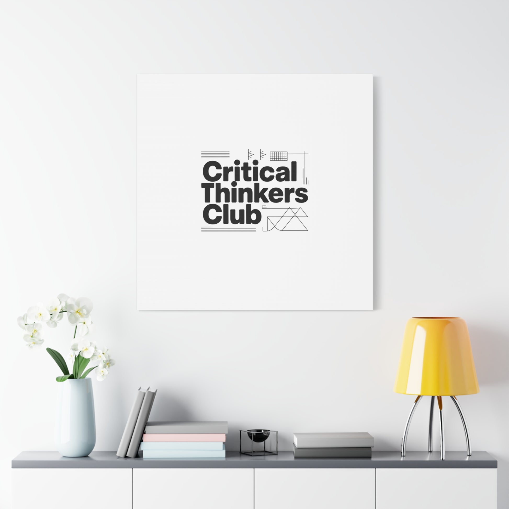 Clean, understated canvas art that readably signals a love of reasoning and low-key wit. Bold geometric sans-serif type spells out “Critical Thinkers Club” in black on a white field, surrounded by minimal line motifs—grids, flags, and simple shapes—that echo diagrams and analytical thinking. The piece suits study nooks, classrooms, or office walls where subtle intellectual humor and the “processing moment” aesthetic are appreciated, especially during academic seasons.