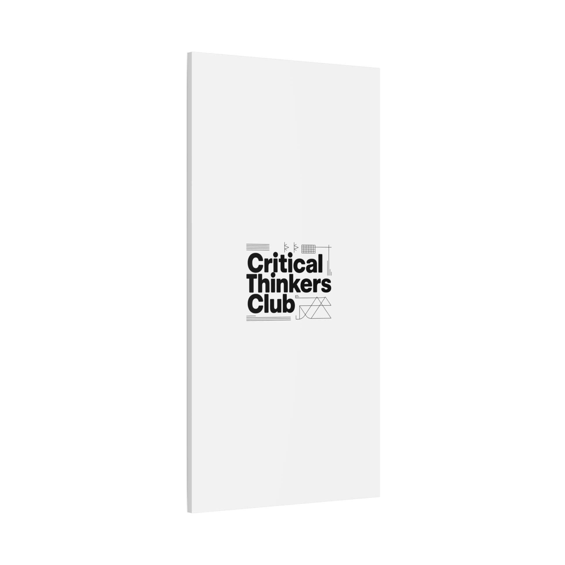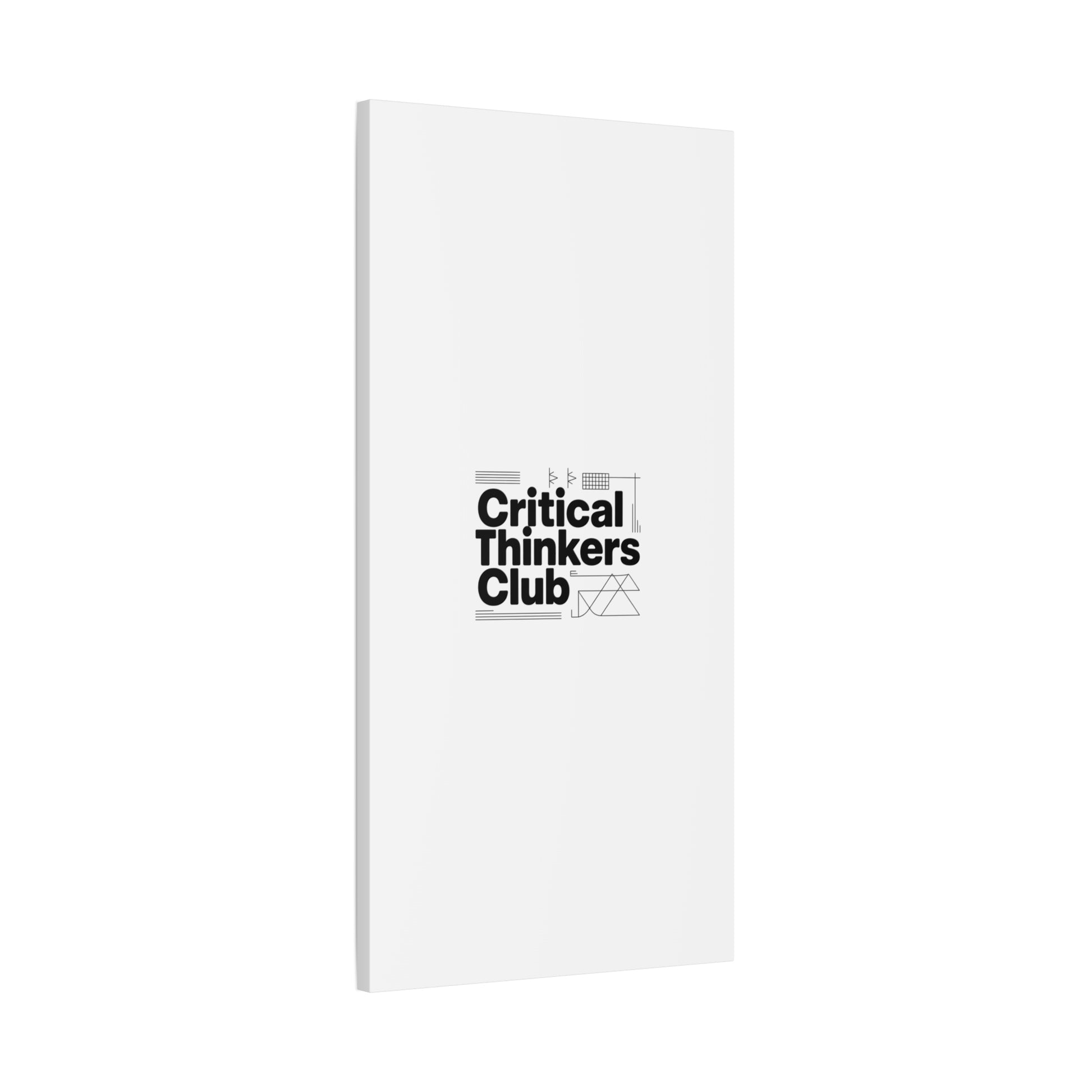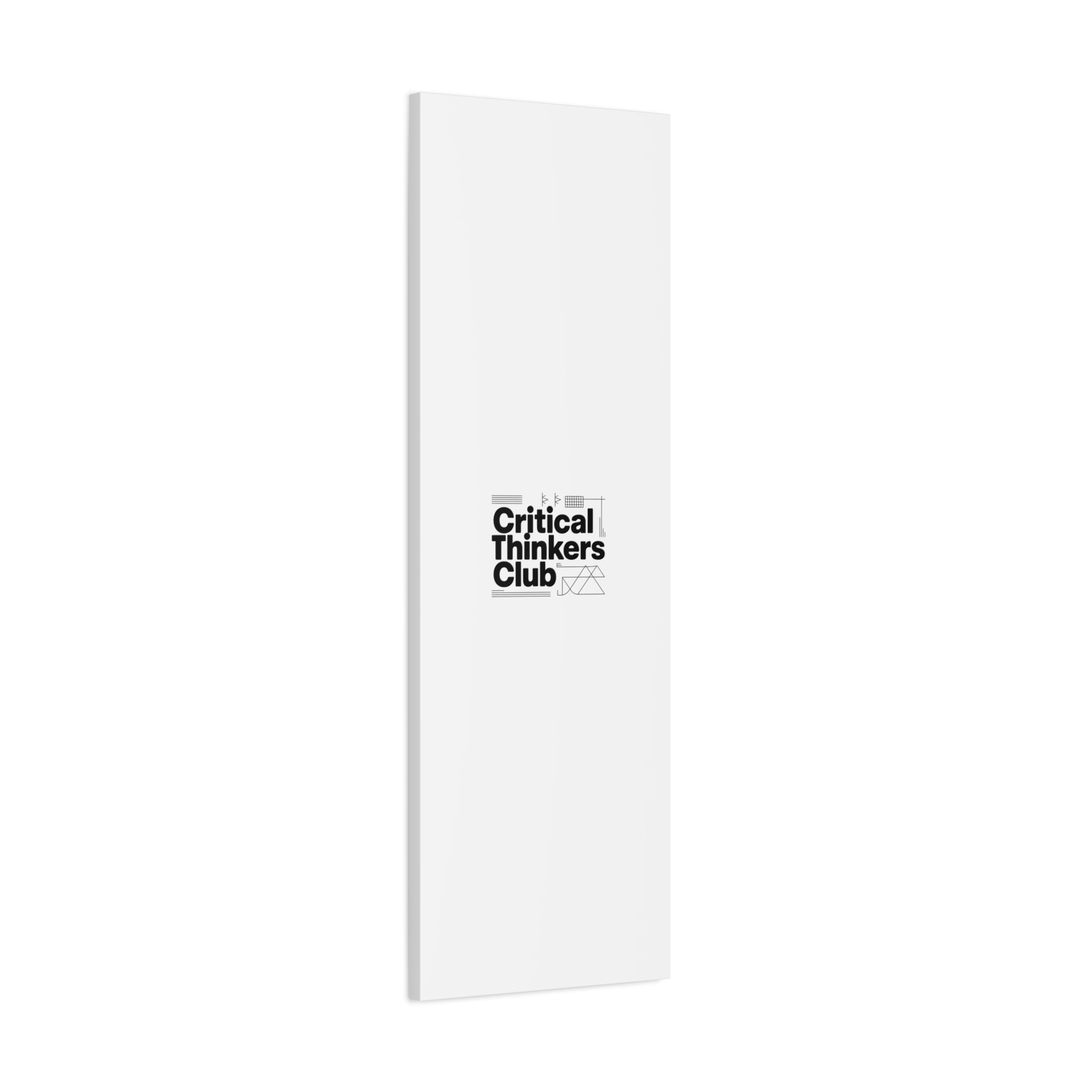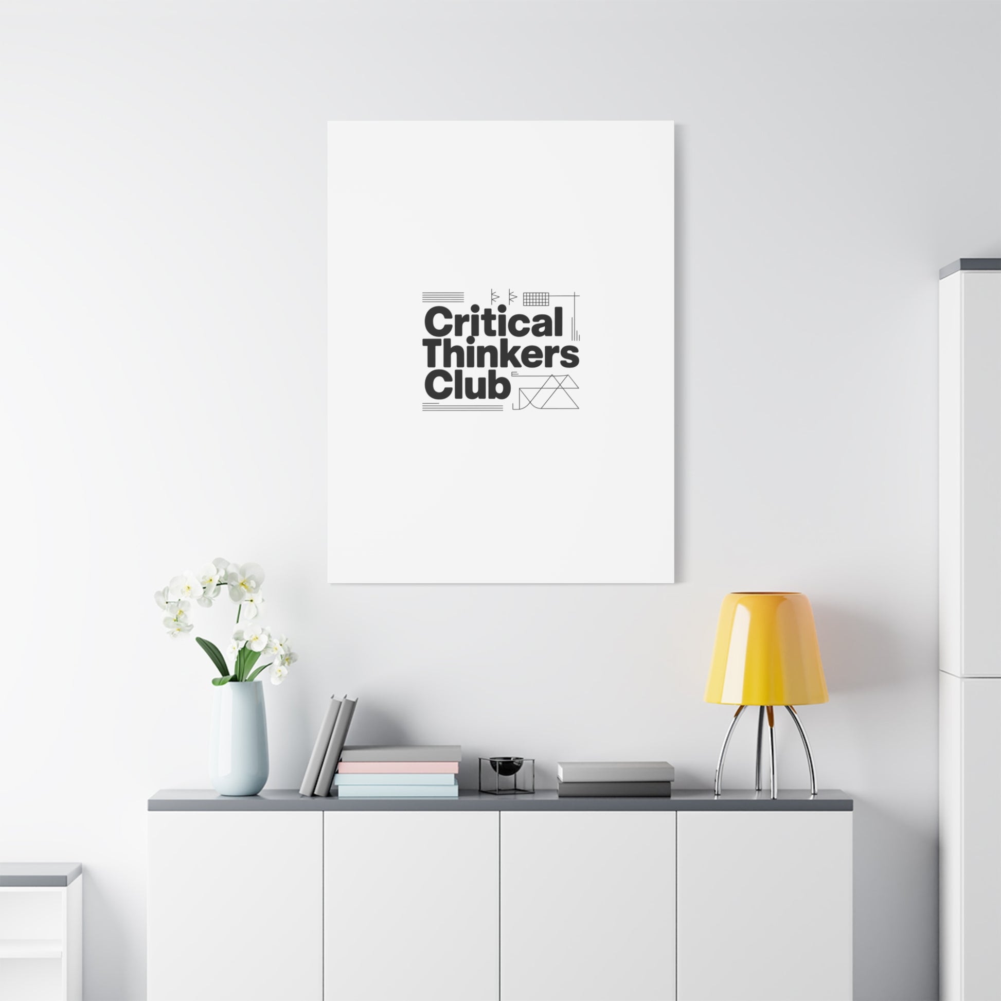 Clean, understated canvas art that readably signals a love of reasoning and low-key wit. Bold geometric sans-serif type spells out “Critical Thinkers Club” in black on a white field, surrounded by minimal line motifs—grids, flags, and simple shapes—that echo diagrams and analytical thinking. The piece suits study nooks, classrooms, or office walls where subtle intellectual humor and the “processing moment” aesthetic are appreciated, especially during academic seasons.