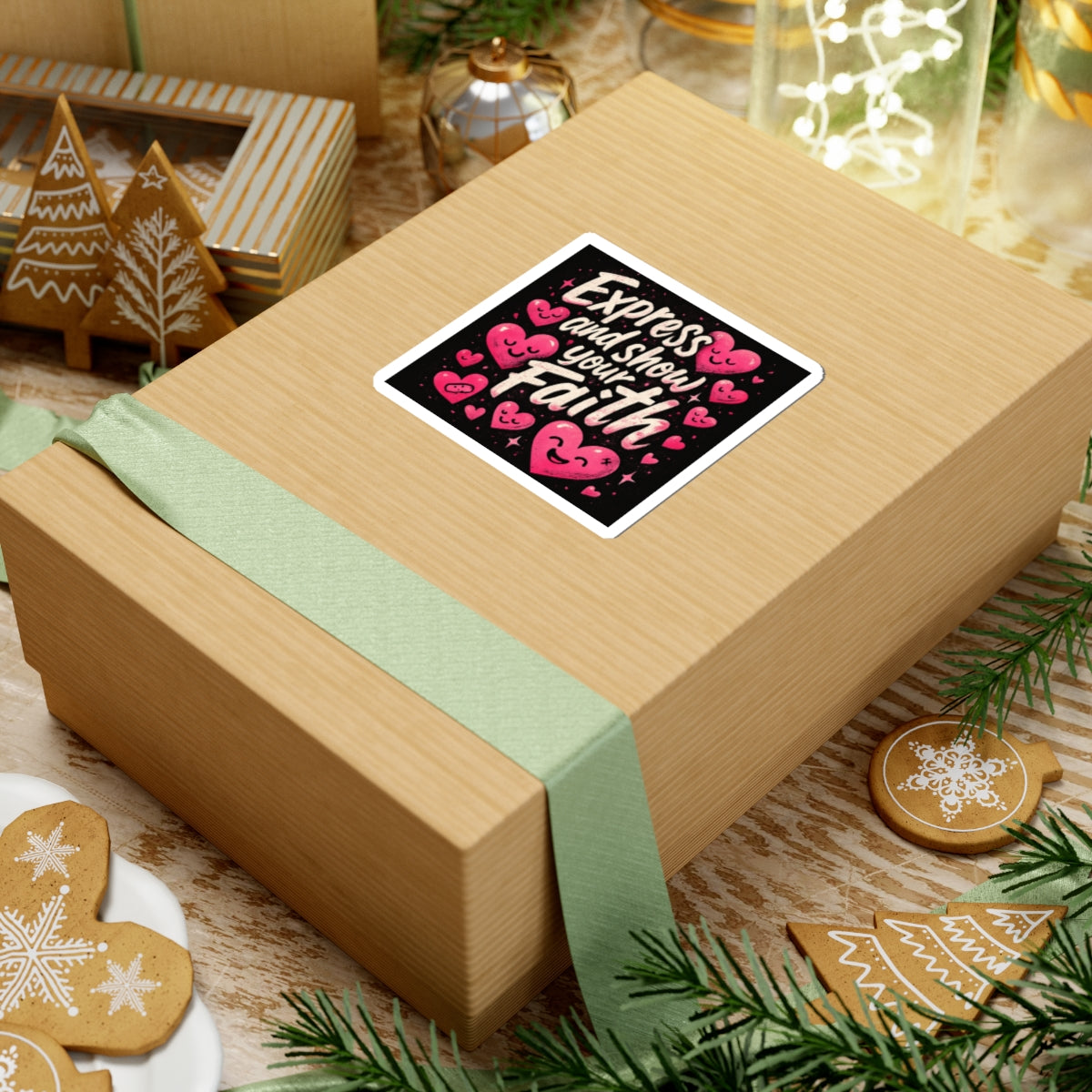 Express and Show Your Faith Kiss-Cut Sticker — Inspirational Christian Faith Sticker with Pink Hearts